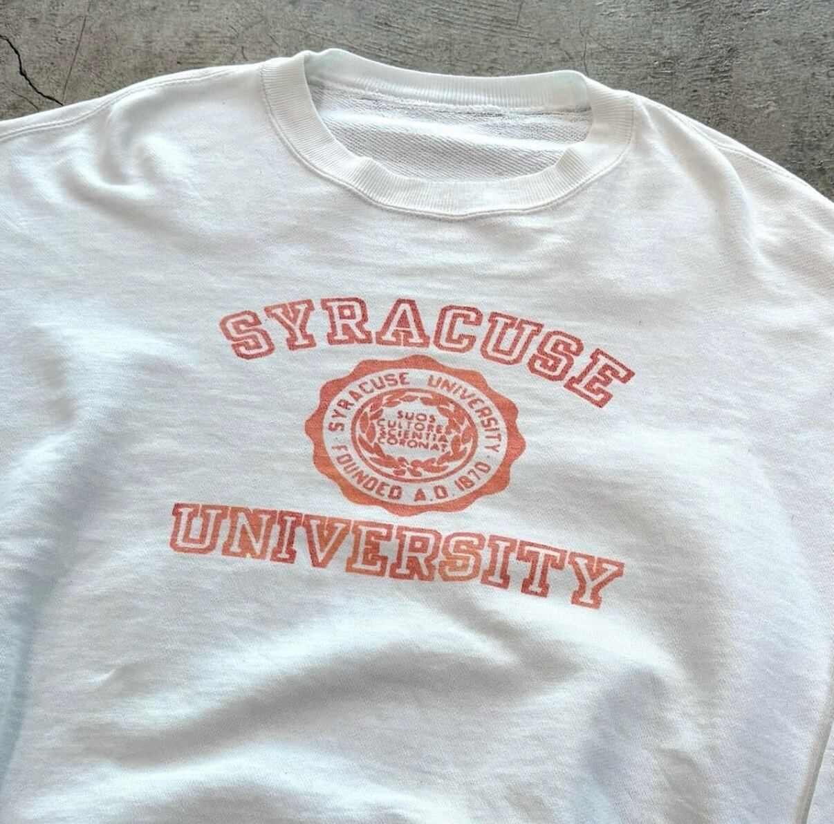 ホワイトのボディに「SYRACUSE UNIVERSITY」とオレンジ色で人気のカレッジプリントがデザインされたアイテムになっております。