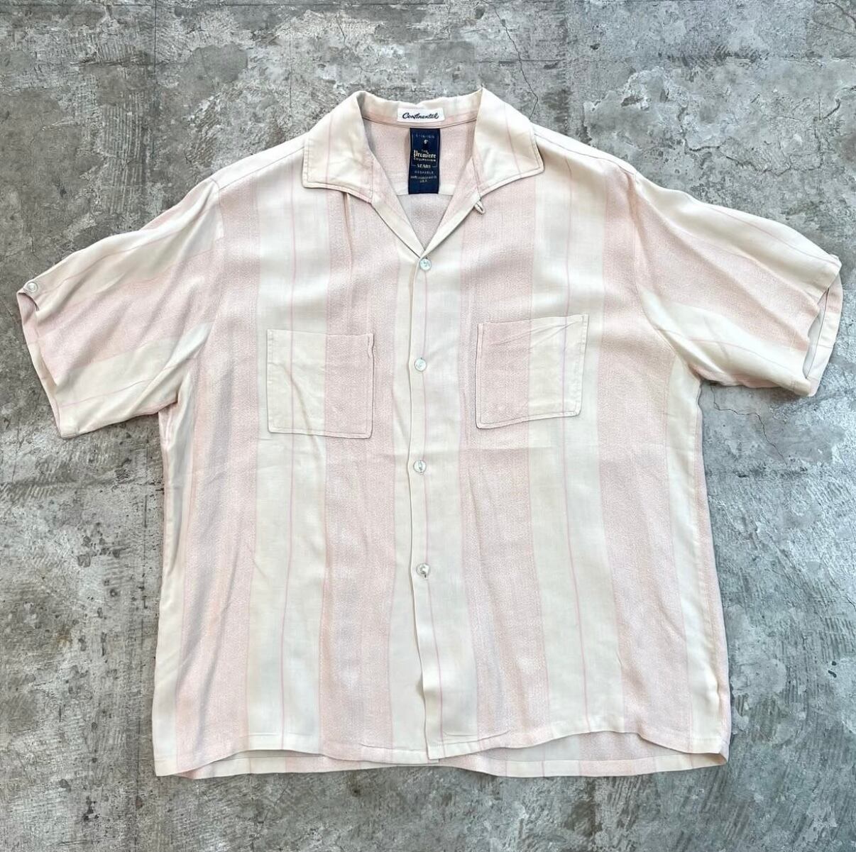 ピンクの淡い色合いとストライプの柄のデザインが非常にマッチしたシャツとなっております。
