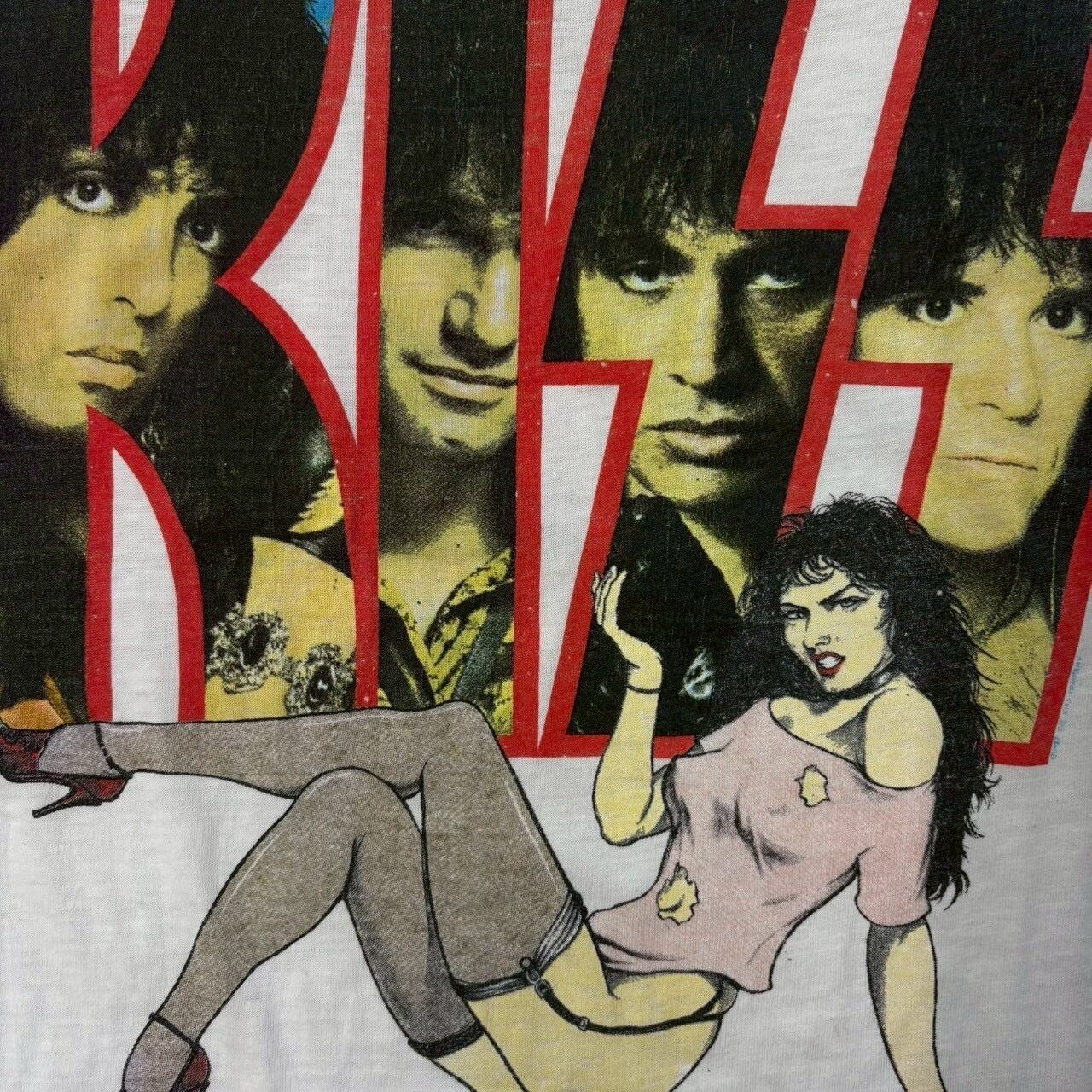 1970年代から活動するアメリカの伝説的ロックバンド「KISS」モチーフのプリントTシャツ。