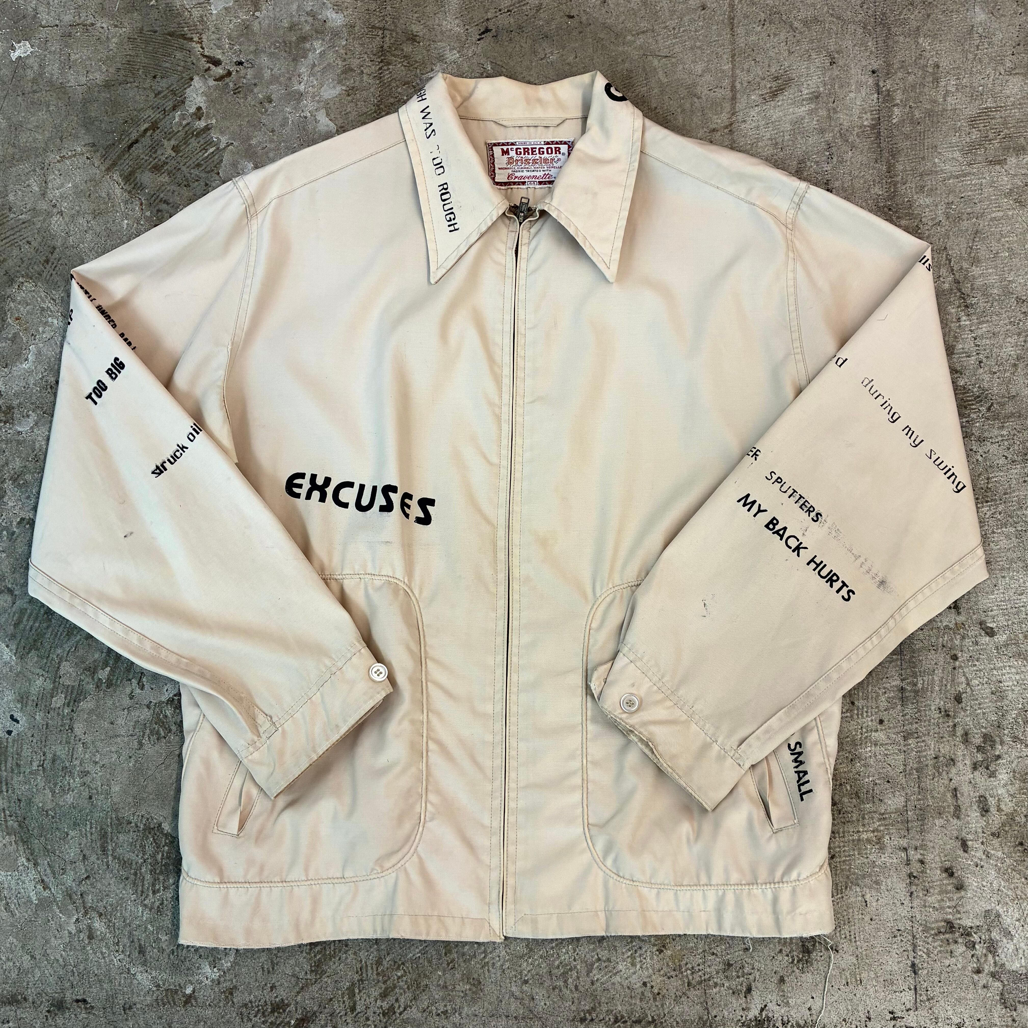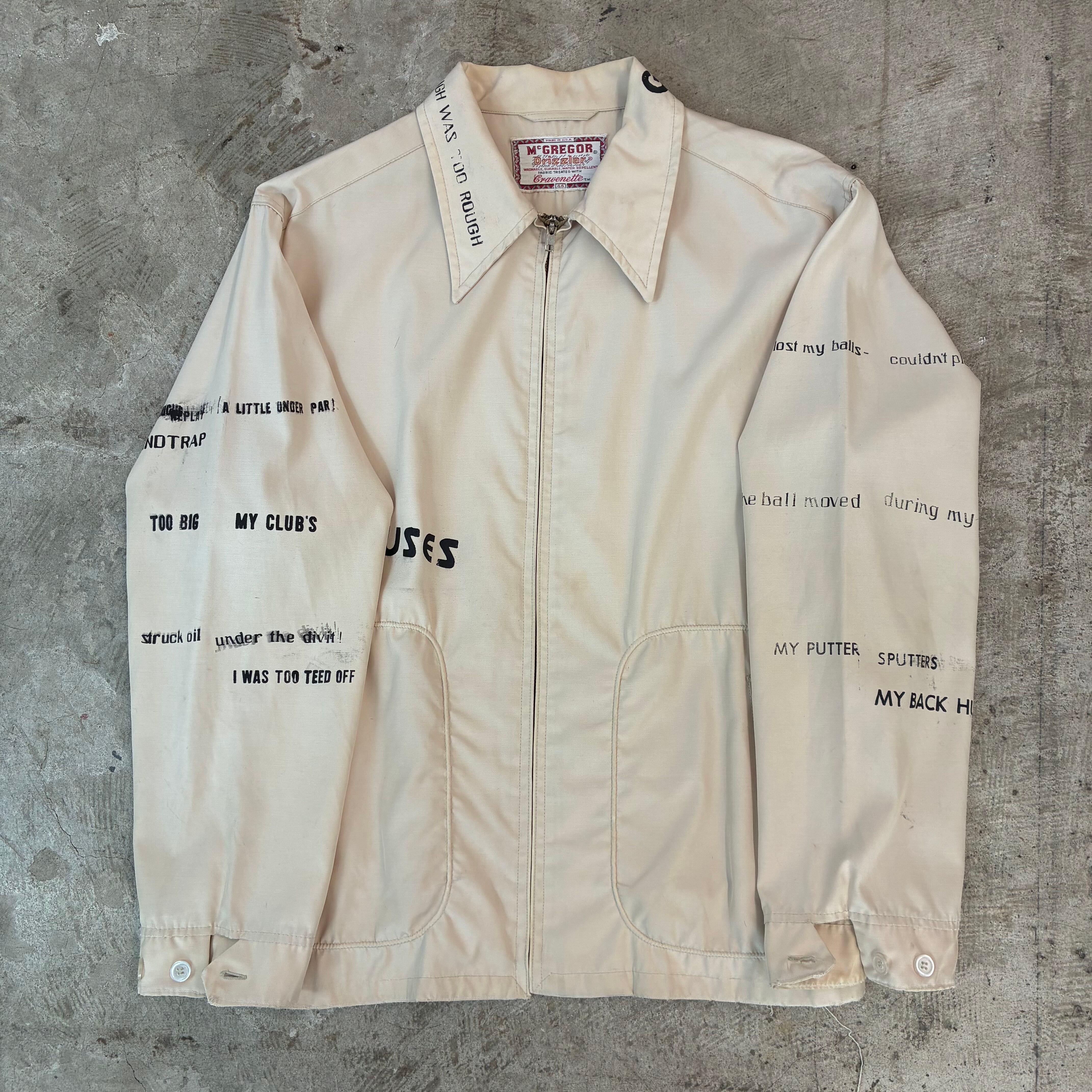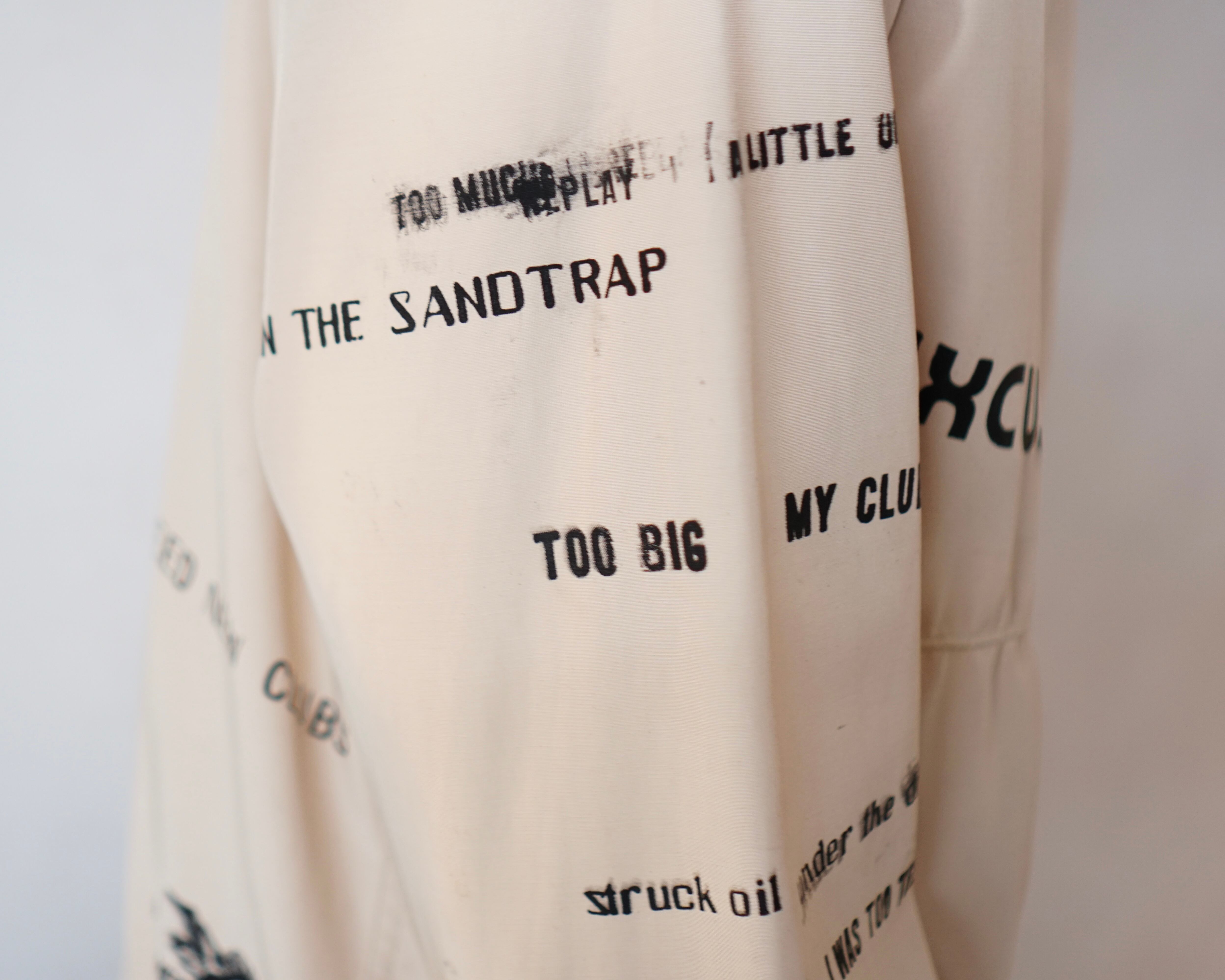 そこにプリントされているのは全て「ゴルフの言い訳」という遊び心ある一着です。