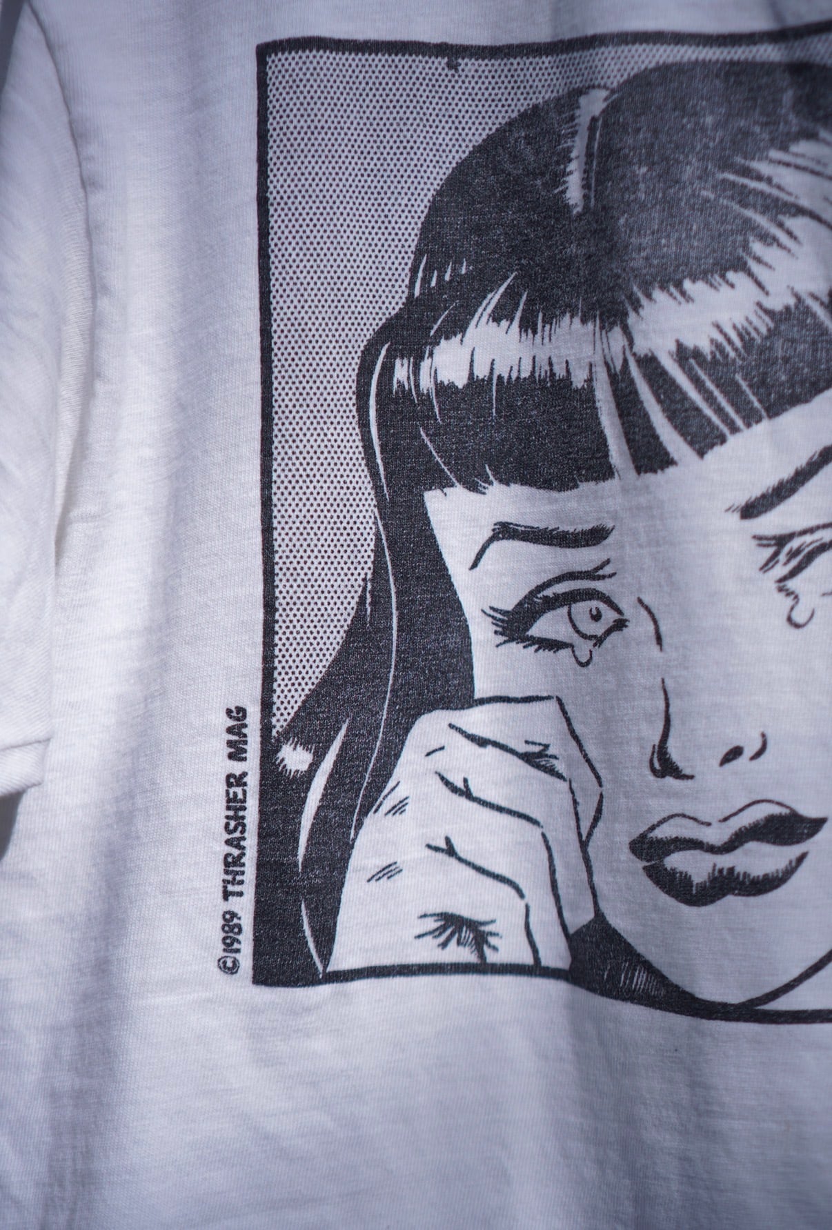 アメリカンコミック風イラストに、スケートカルチャーのユーモアを掛け合わせたヴィンテージTシャツ。
