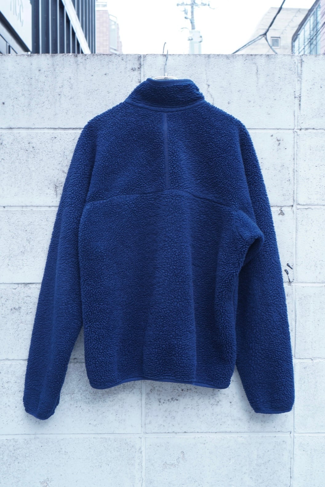 深みのあるネイビーカラーで、色残りが非常に良く、フリースの潰れも少ない好コンディション。