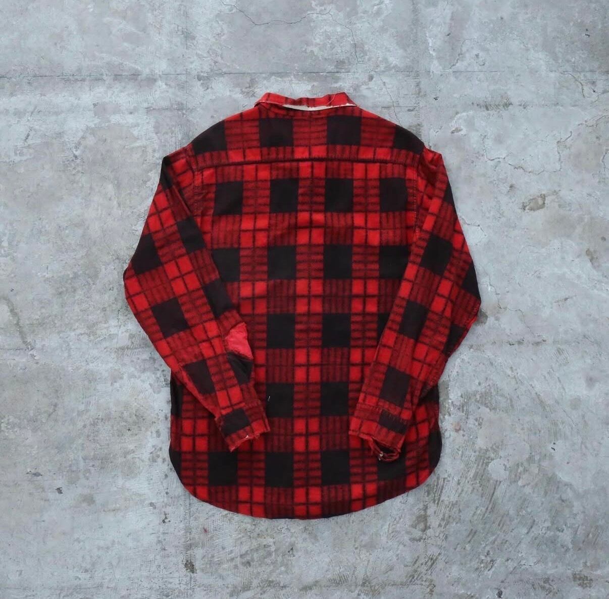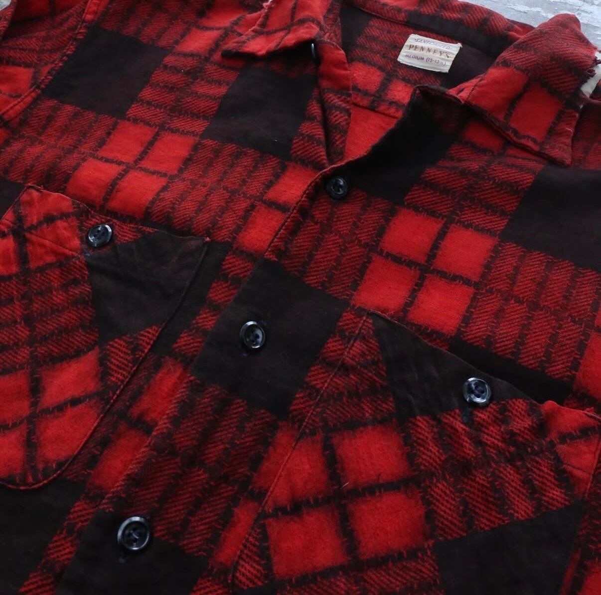 鮮やかな赤黒のブロックチェックが印象的な、PENNEY'Sのプリントネルシャツ。
