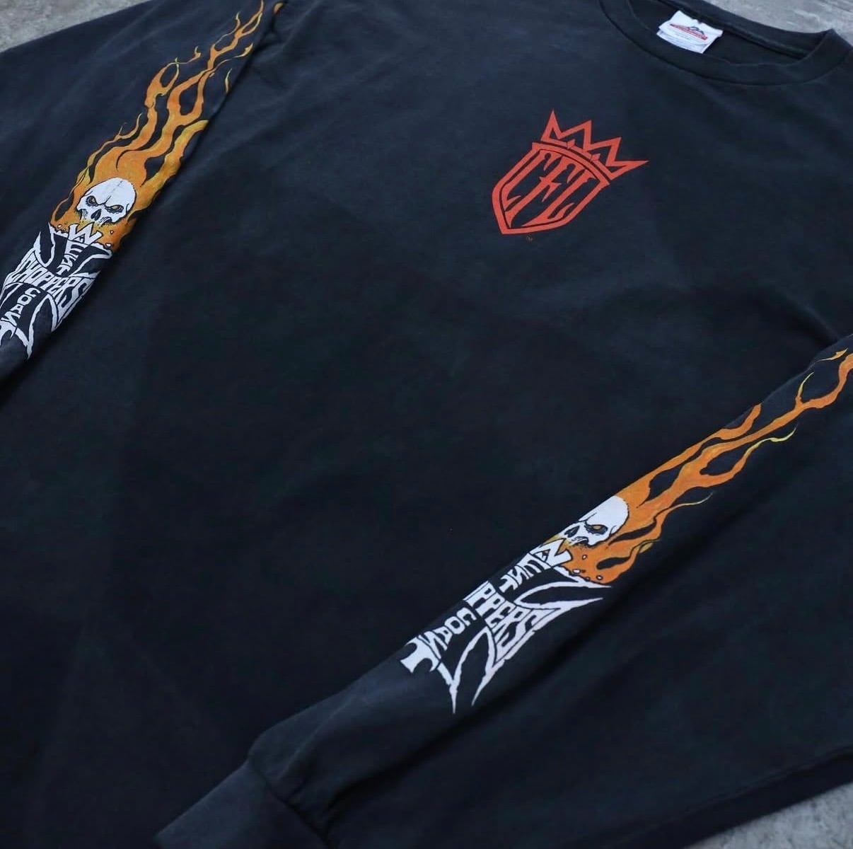 両袖にはスカルxフレイムのグラフィックが入るインパクトのある一枚。