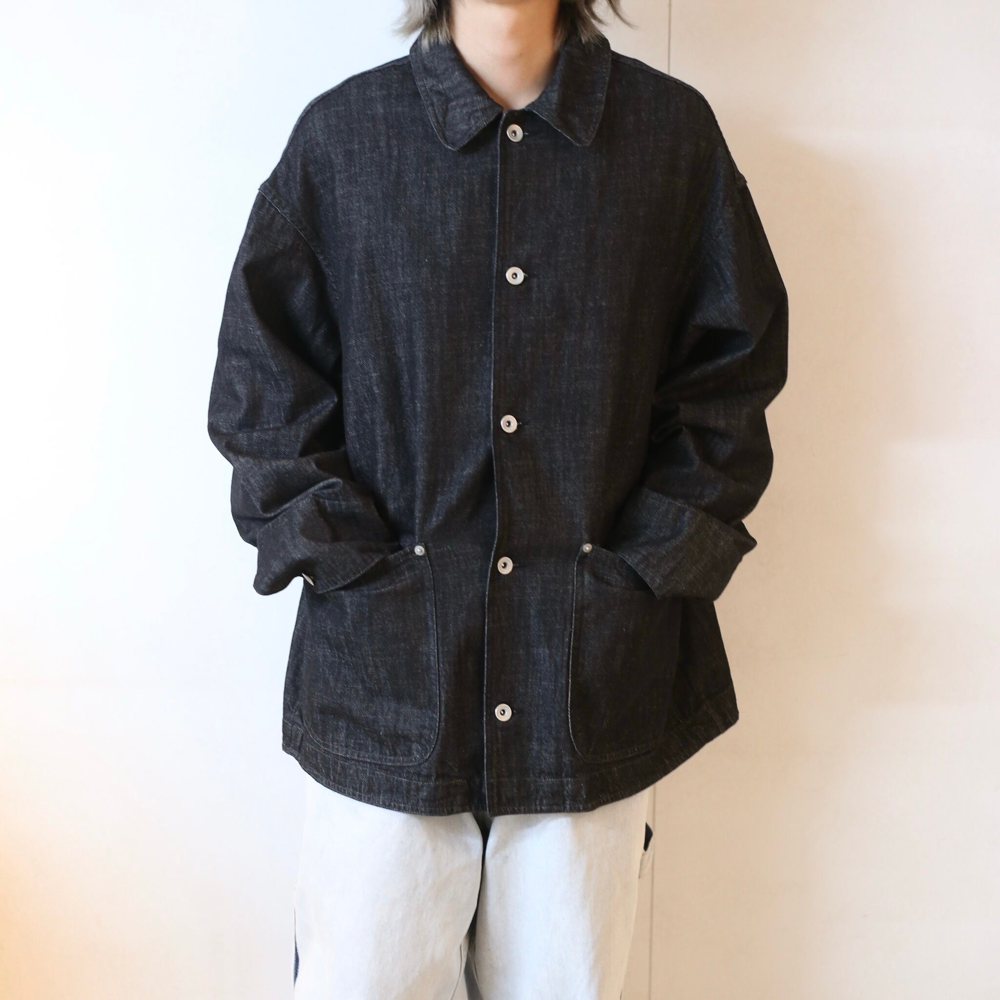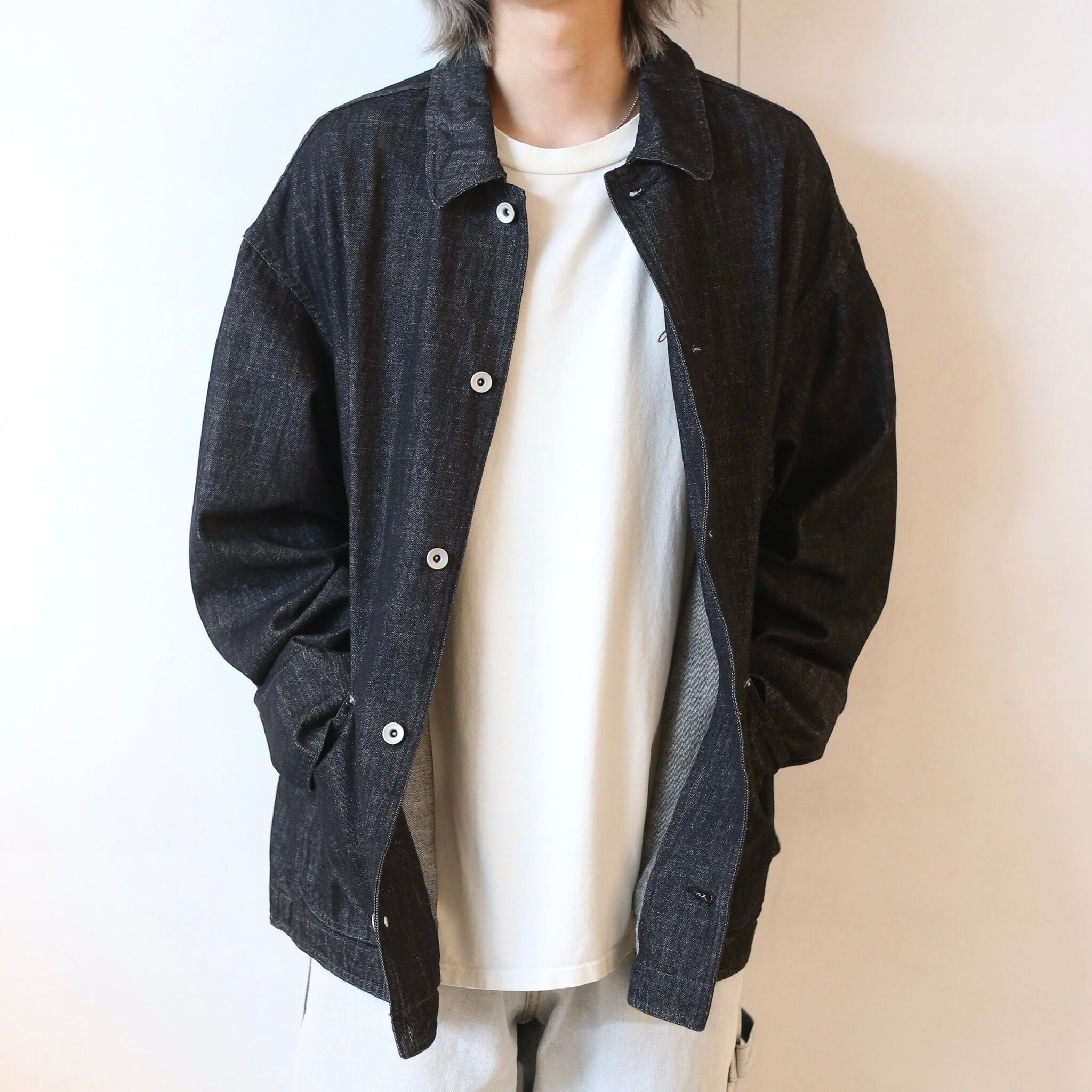 絶妙なダークインディゴのデニム生地が魅力のカバーオールジャケット。