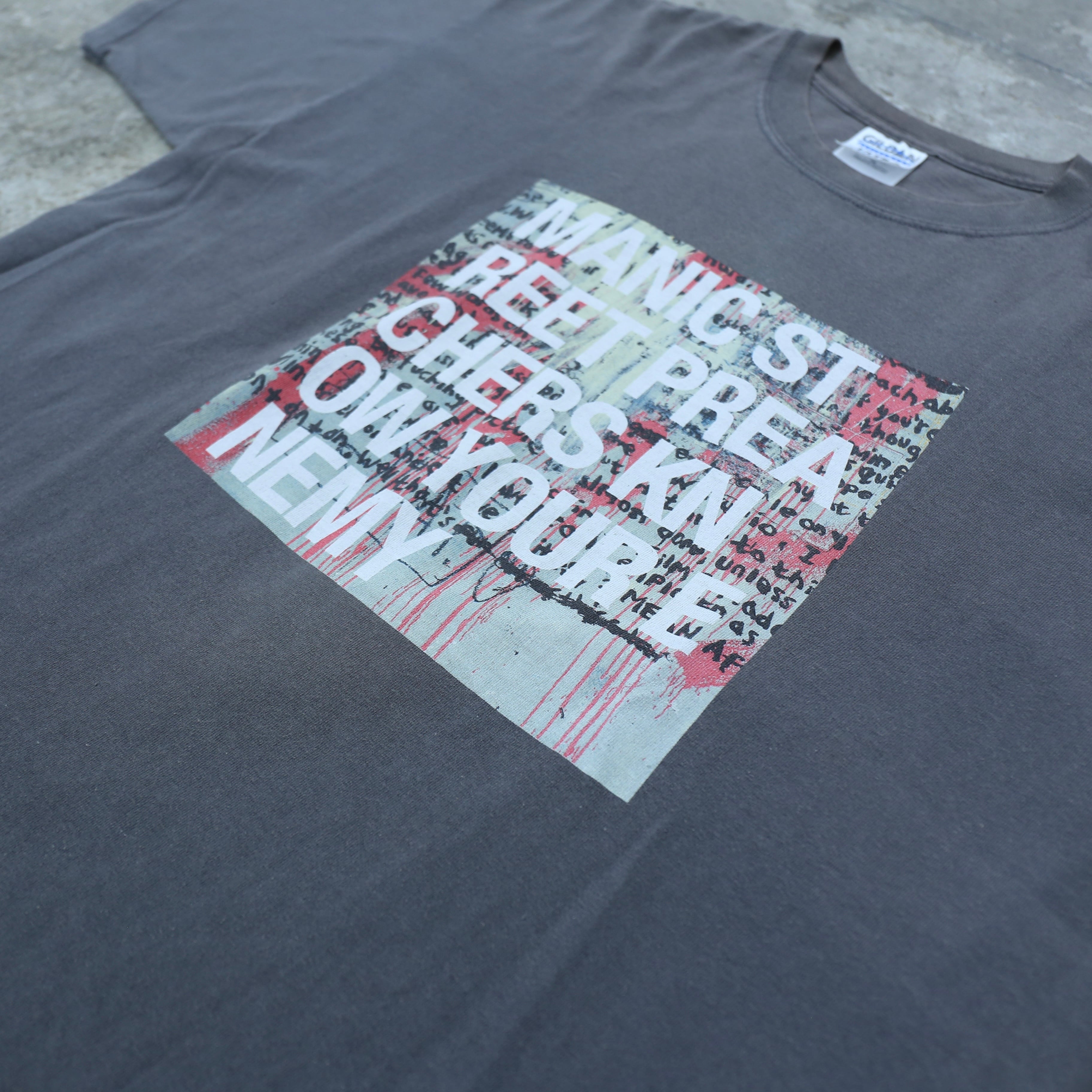 ウェールズ出身のロックバンド Manic Street Preachers のアルバム『Know Your Enemy』をモチーフにしたグラフィックTシャツ。
