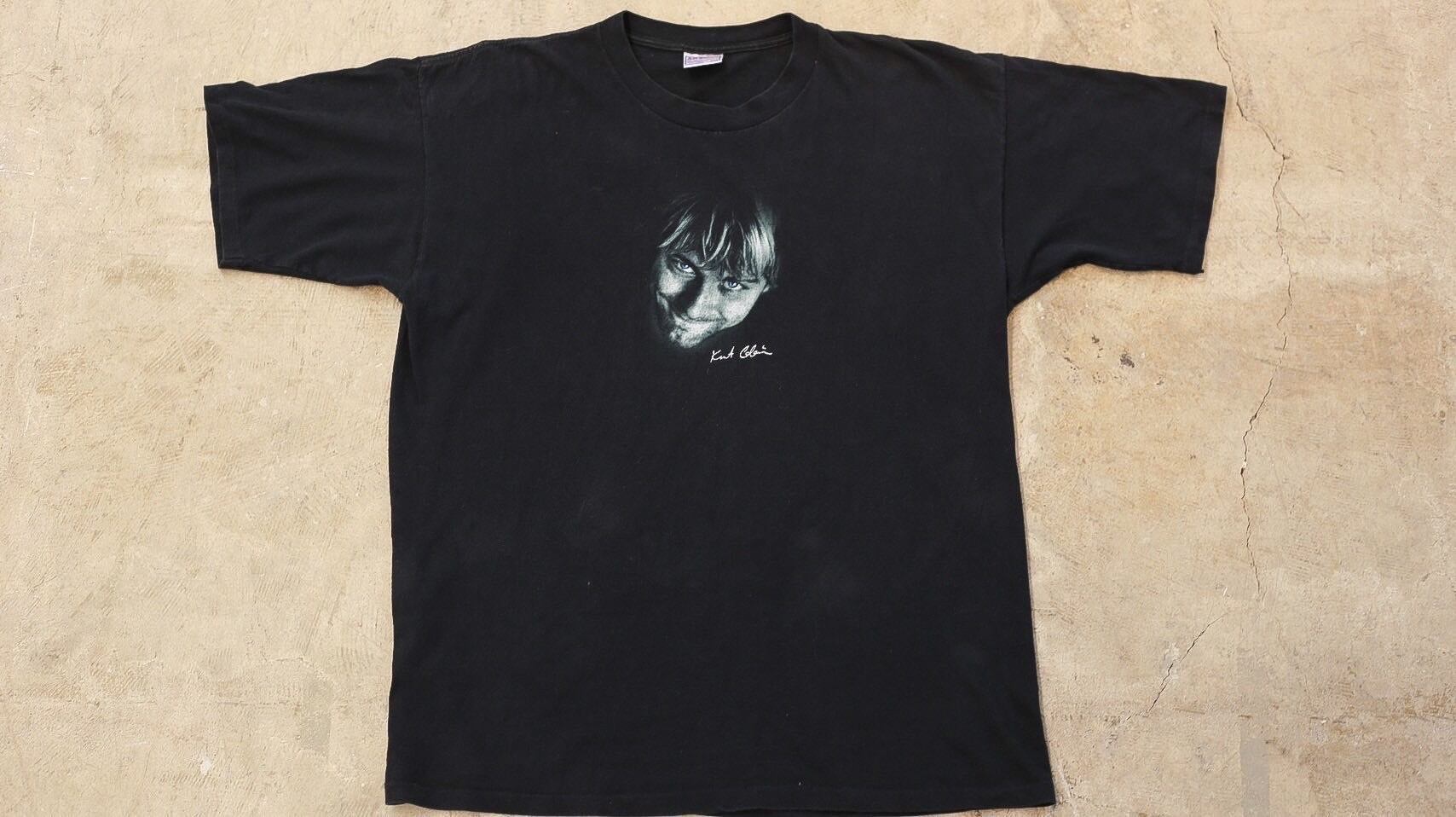 90年代後半に作られたカートコバーンがプリントされたブラックT-shirt。コットン100%で袖と裾はシングルスティッチになっております。
