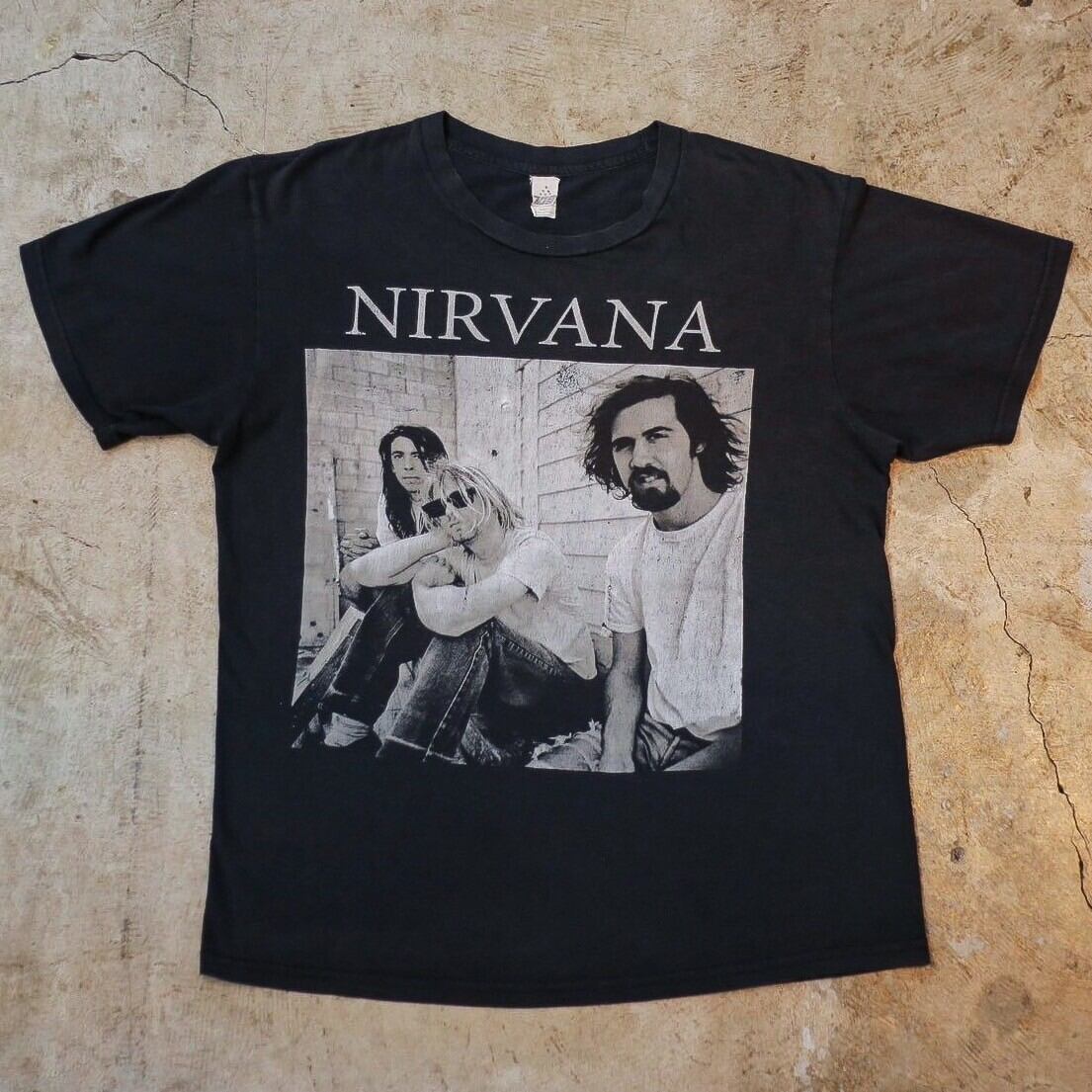 ニルヴァーナの3人が写った写真がプリントされたレアな一着。