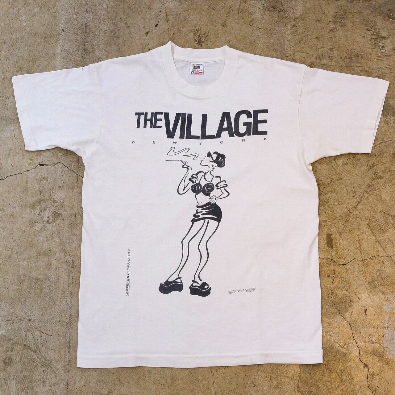 今でも愛され着続けられてるfruits of the roomのタグがついている、女の人がタバコを吸った女の人がプリントされているTシャツ。