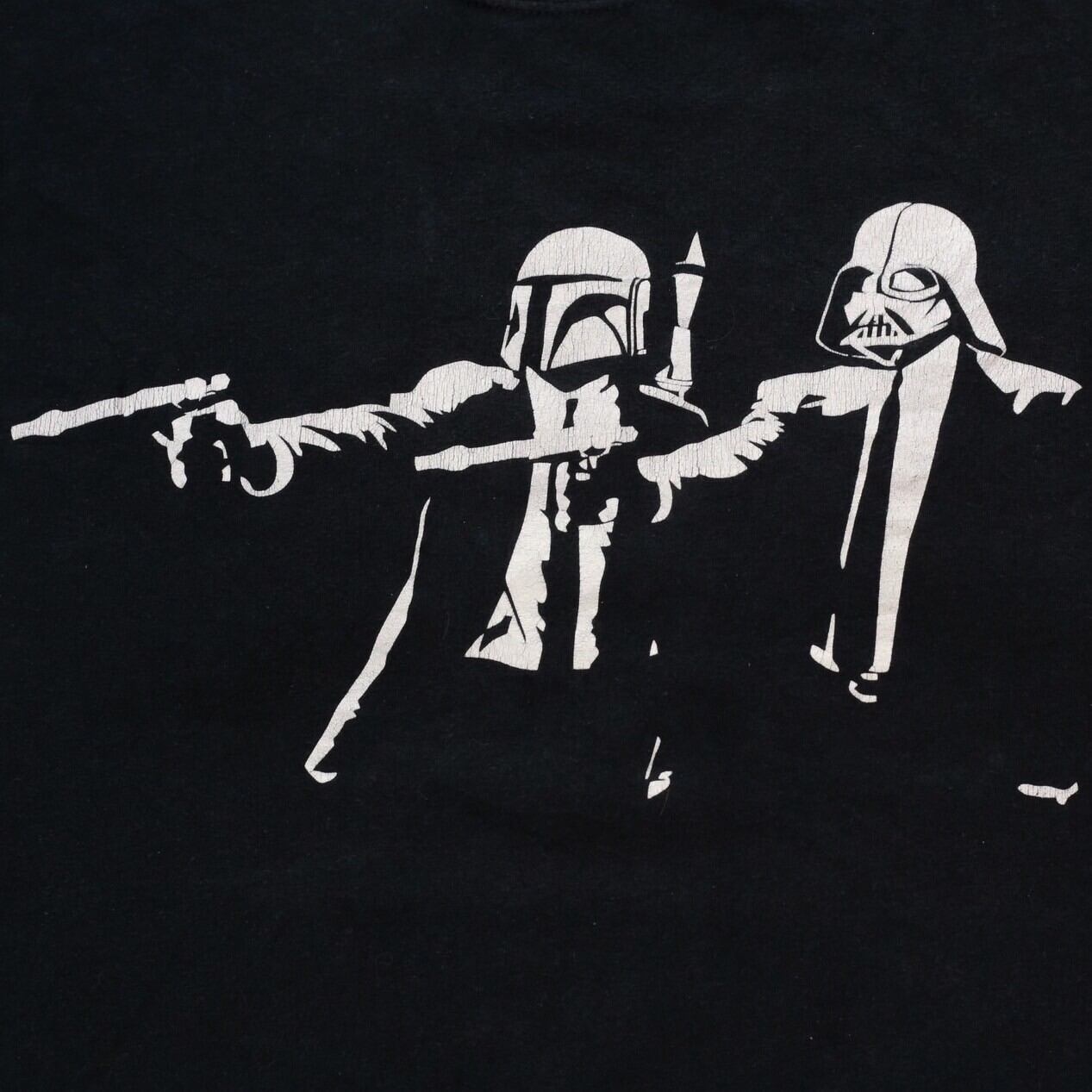 パルプ・フィクションの有名シーンとスター・ウォーズのキャラクターのパロディTシャツになります。