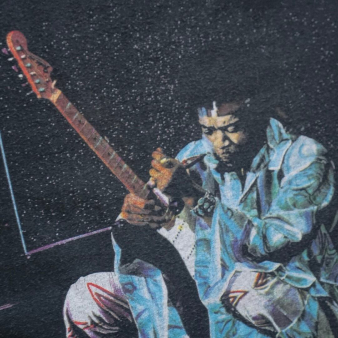 日本では「ジミヘン」の略称で知られるアメリカ出身の世界的ギタリスト「ジミ・ヘンドリックス」のプリントTシャツ。