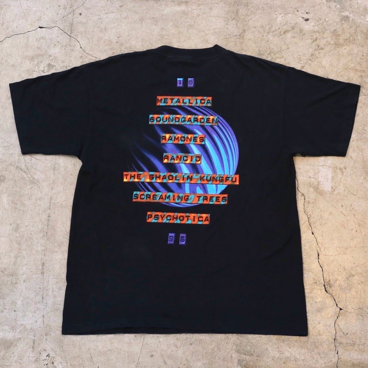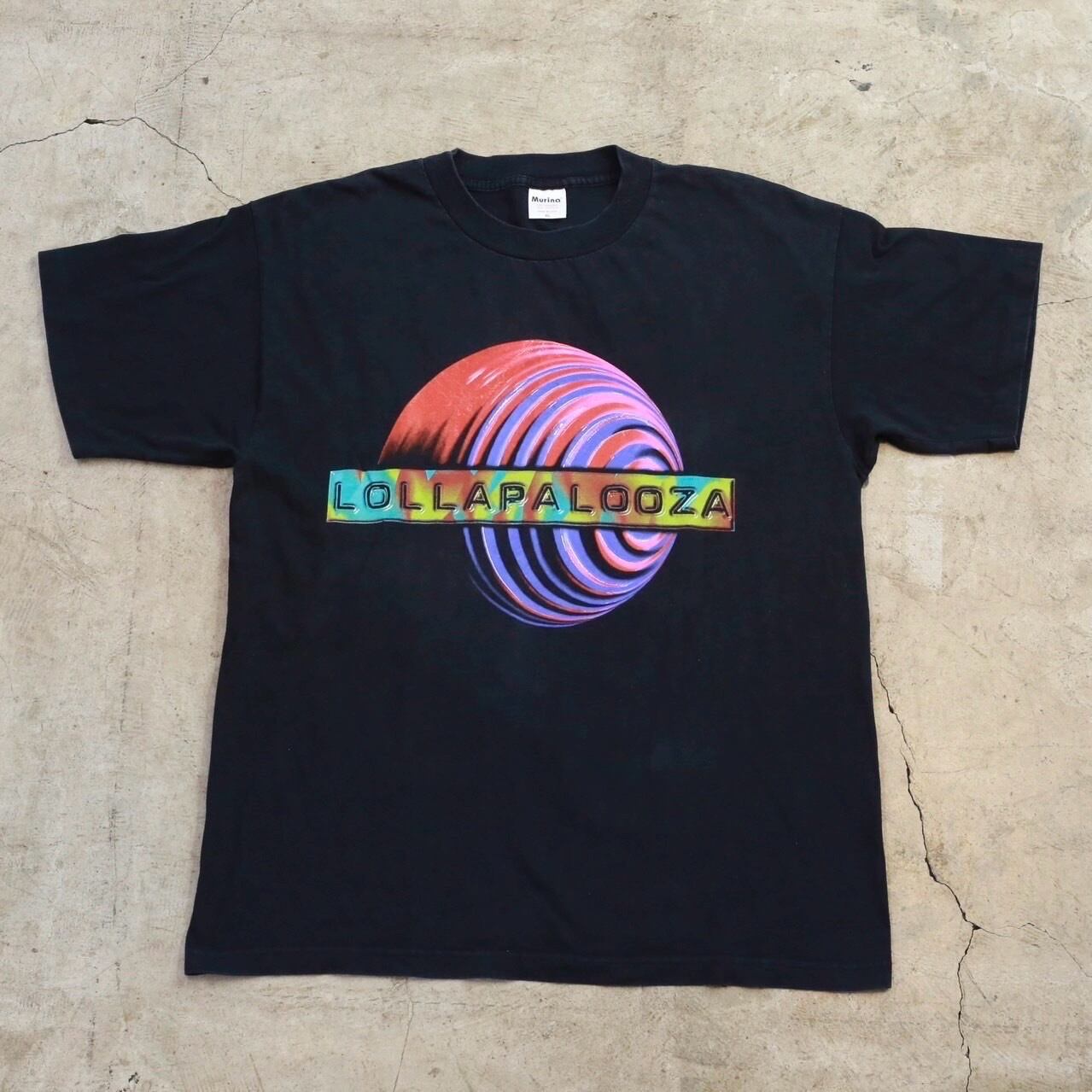 フロントには、ロラパルーザのロゴ、バックには、「メタリカ」、「サウンドガーデン」など豪華出演バンドがプリントされており、90年代のミュージック・カルチャーに多大な影響を与えたロラパルーザ初期の数少ない貴重なTシャツになっております。