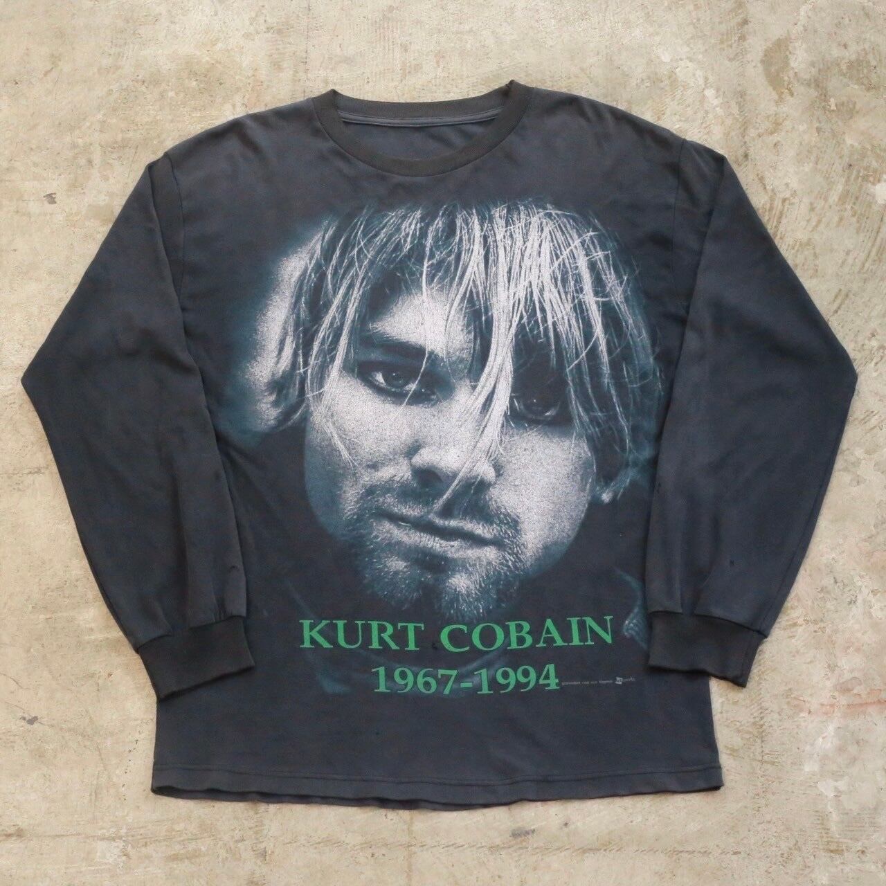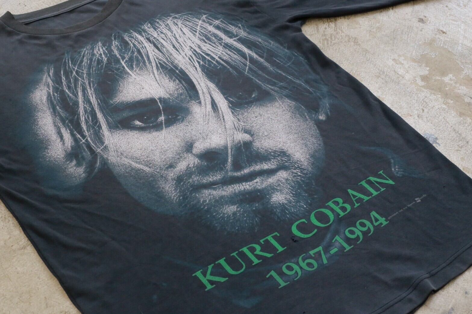 27歳という若さでこの世を去った、誰もが知る伝説のロックバンド「ニルバーナ」のフロントマン「カートコバーン」を追悼するメモリアルTシャツ。