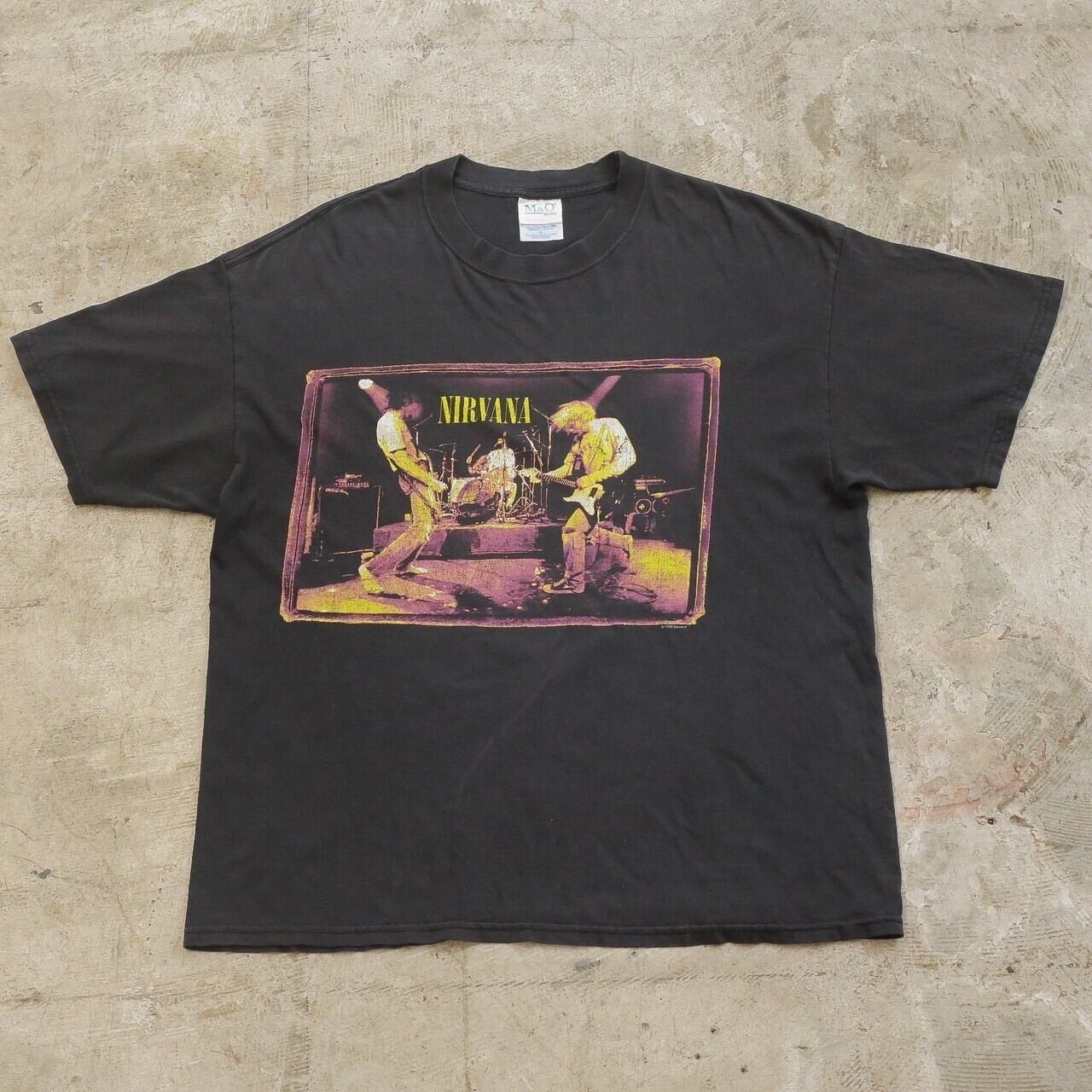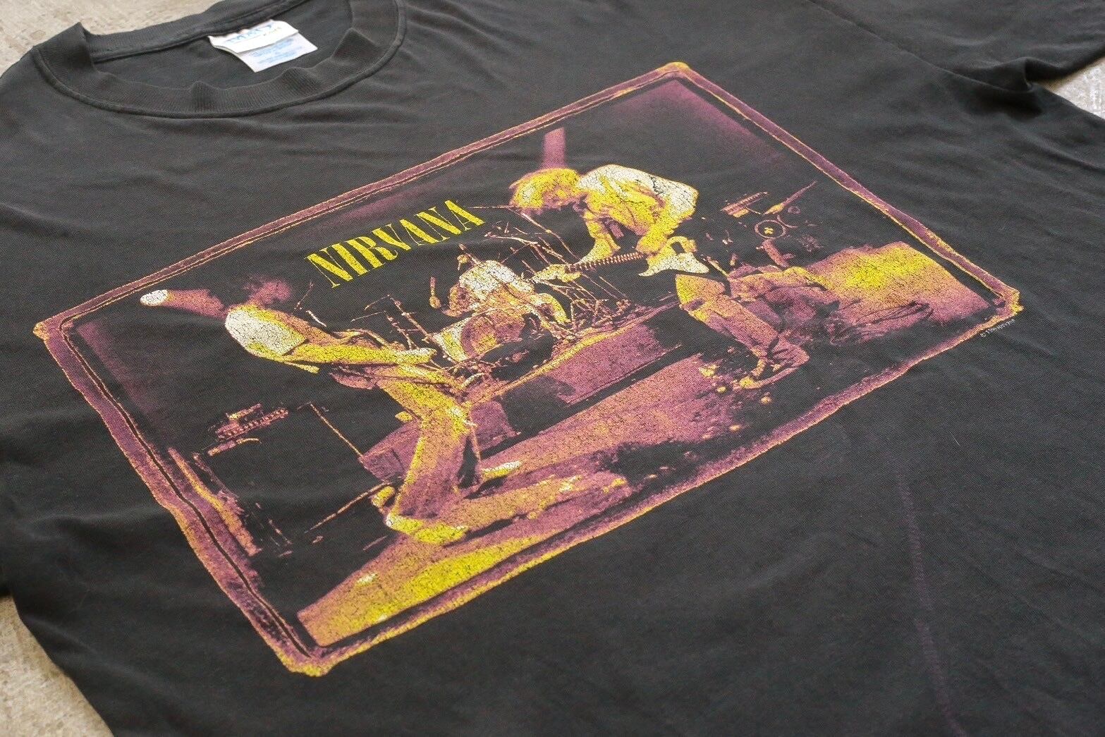 誰もが知る伝説のロックバンド「ニルバーナ」のライブコンピレーションアルバム「フロム・ザ・マディ・バンクス・オブ・ウィシュカー」のジャケットがプリントされたTシャツ。メンバー全員がデザインされているのは数が少なく、かなり人気の一枚になっております。