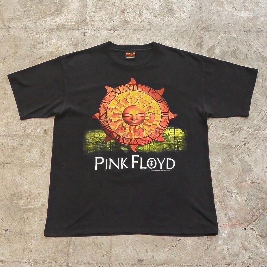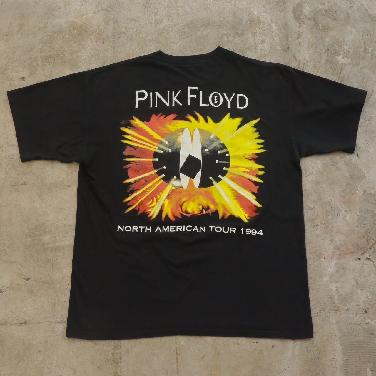 ビートルズやローリング・ストーンズなどと並ぶ英ロック界の大物バンド「ピンク・フロイド」の1994年のツアーTシャツになっております。フロントにはツアーで「Time」を演奏しているときに現れる日時計がデザインされております。