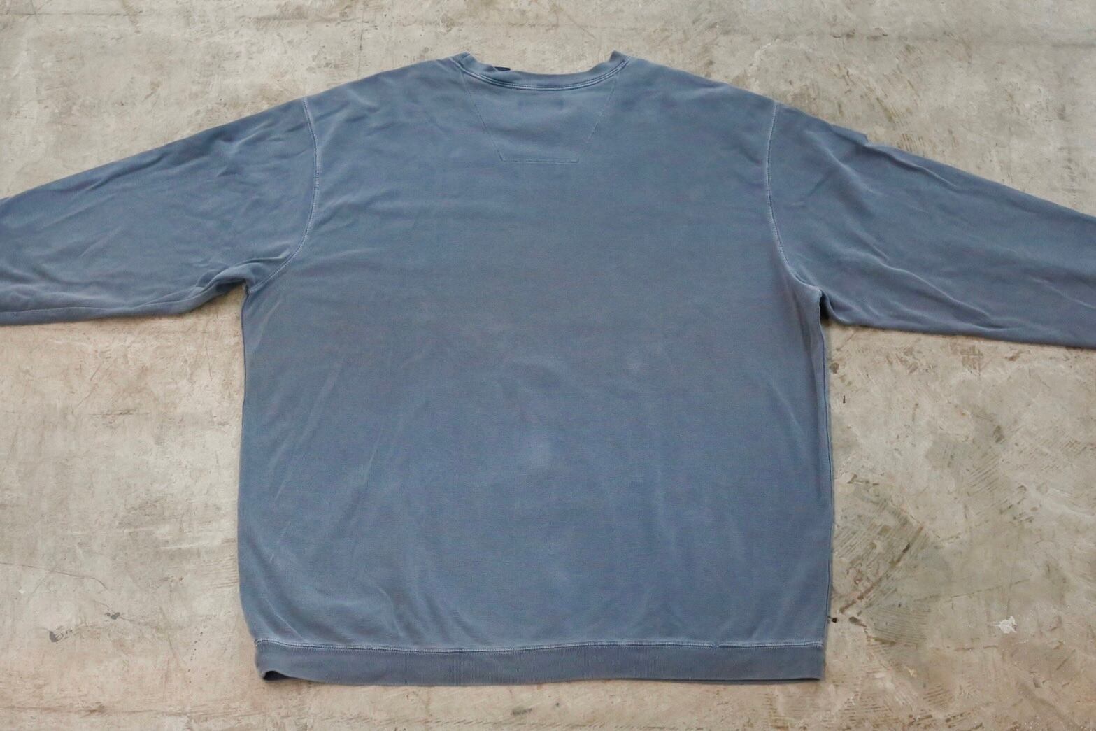 オーバーサイズでも着膨れしない厚みなので どんな季節も合わせやすく、ブルーグレーのカラーリングも絶妙で良い。