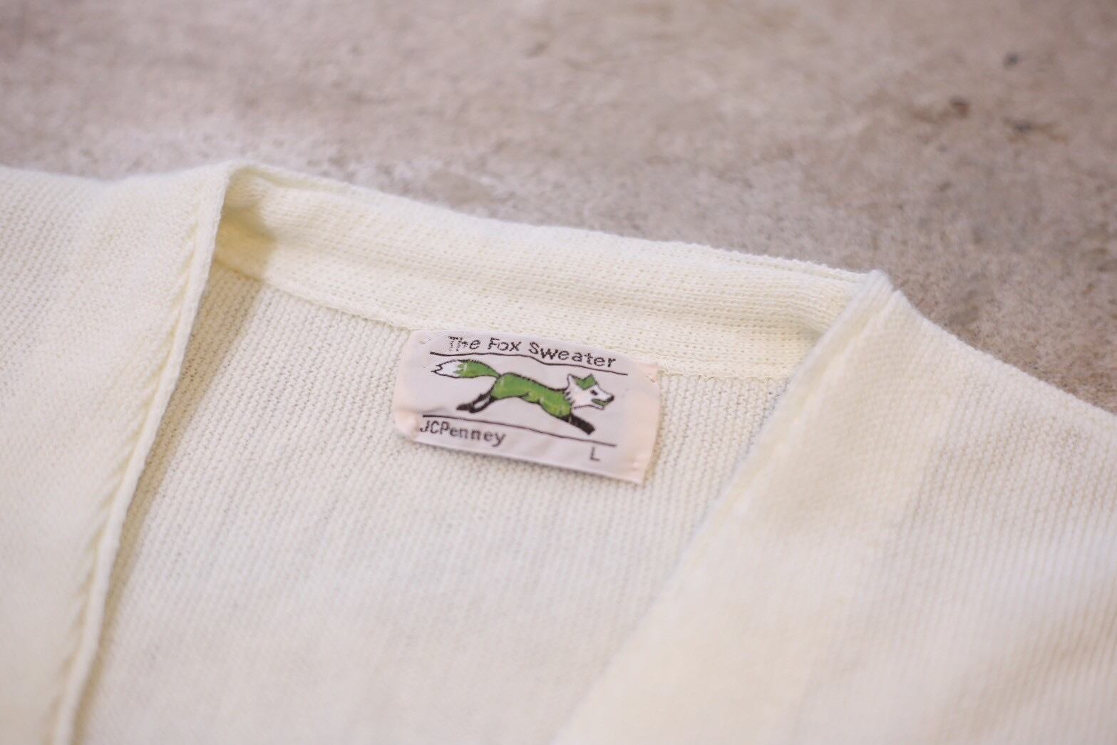 1902年に創業したアメリカの代表的アパレルストアであり現在でもヴィンテージ好きの心をつかみ続ける老舗ブランド「ジェーシーペニー」。こちらのフォックスカーディガンはカートコバーンが着ていたことでも有名なアイテムになっております。