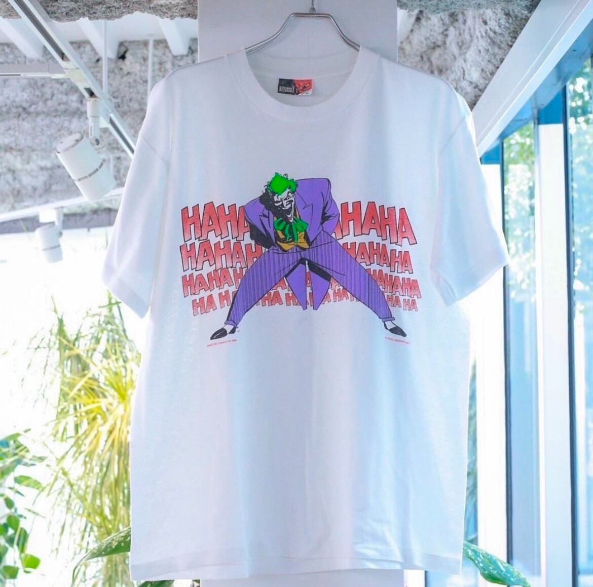 DCコミックスの『バットマン』に登場する悪役でバットマンの宿敵としてバットマンを最も苦しめる敵の一人てある「ジョーカー」のプリントTシャツ。