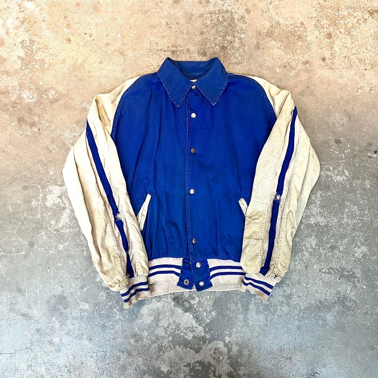 1940年代から 1950年代にかけてアメリカの大学球団や高校のスポーツチームにおいて広まり、1970年代になるとストリートウェアとしての地位を確立した永遠の名品「スタジャン」。こちらは60年代の青を基調としたボディがカッコいいかなり貴重な1枚になっております。